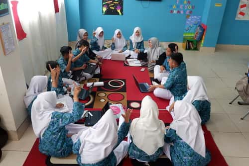 Untuk mendukung hal di atas, kelas dirancang sedemikian sehingga tak memiliki arah muka demi menciptakan impresi bahwa fokus kelas adalah seluruh siswa, dan bukan guru.